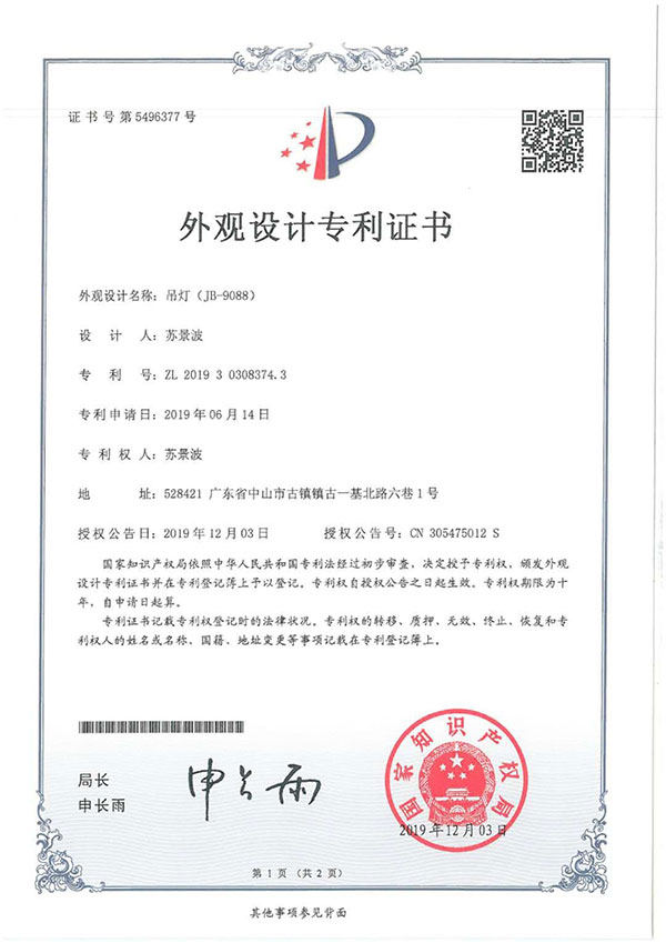 外觀設計專利證書